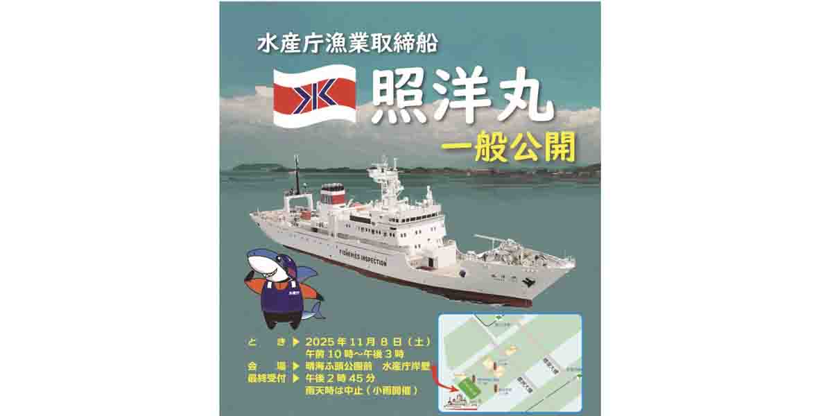 水産庁は2025年11月8日(土)、漁業取締船「照洋丸」の一般公開を東京港 晴海埠頭H3バースで実施する