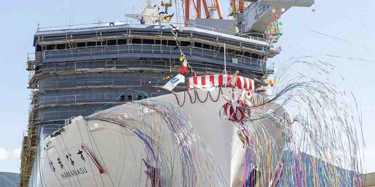 三菱重工グループの三菱造船は2025年10月9日(木)、三菱重工業 下関造船所江浦工場で建造中の新日本海フェリー向けの大型カーフェリーの命名・進水式を実施、同船は「はまなす」と命名された。