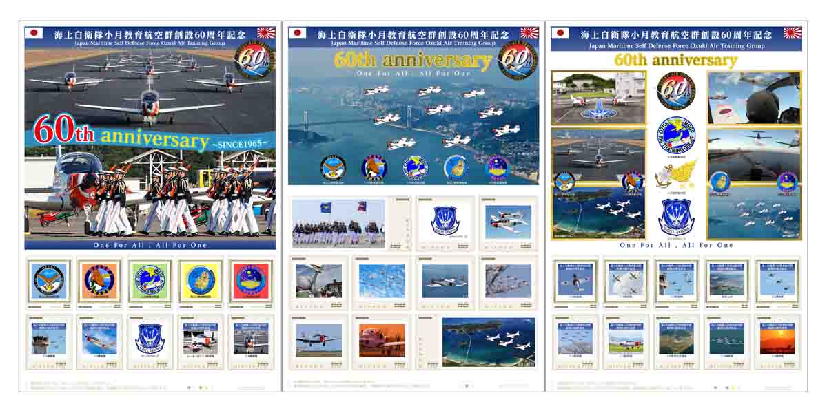 発売されるフレーム切手は「海上自衛隊小月教育航空群創設60周年記念 part1」、「海上自衛隊小月教育航空群創設60周年記念 part2」、「海上自衛隊小月教育航空群創設60周年記念 part3」で、「part1」と「part3」は85・110円切手×各5枚とフレームがセットで1シート1,600円、「part2」は110円切手×10枚がセットになっており1シート1,800円で販売される。各シートともT-5練習機や小月航空基地の管制塔の写真、部隊マークなどがデザインされたものとなる。