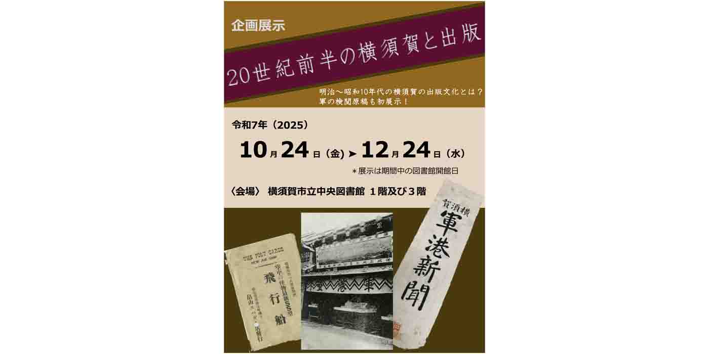 横須賀市立中央図書館は2025年10月24日(金)から12月24日(水)までの期間、同館の1階、3階において、企画展示「20世紀前半の横須賀と出版」を開催している。