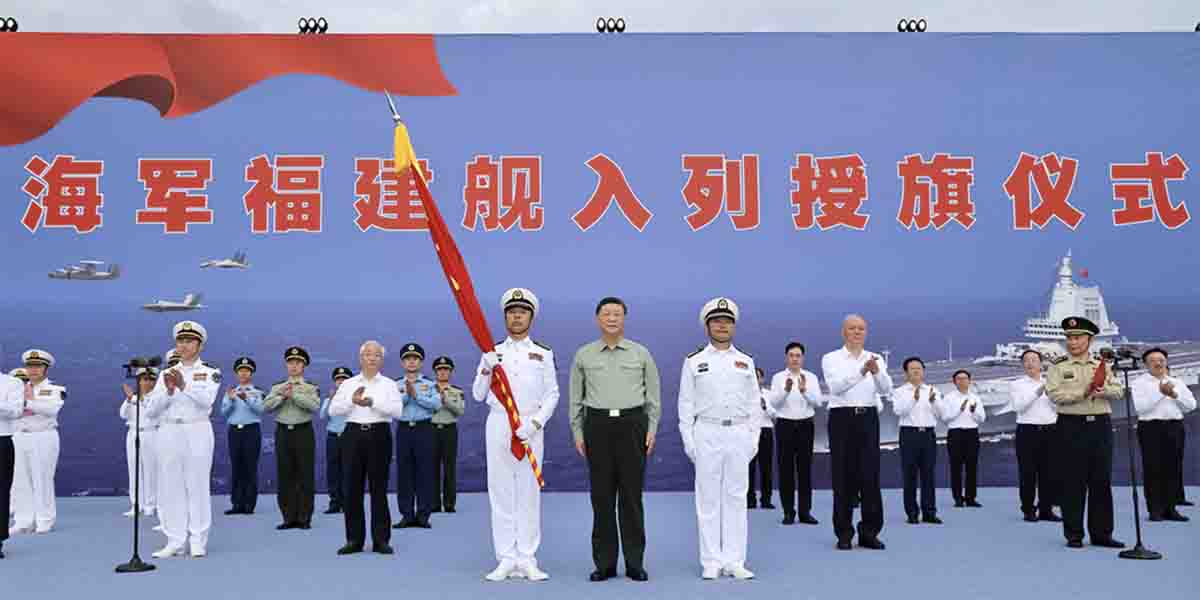 2025年11月5日(火)、中国初の電磁カタパルトを採用した航空母艦「福建(18)」の就役・授旗式が、海南省三亜の軍港で実施された。当日は習近平国家主席が式典に出席し、艦長、政治委員に軍旗を授与したのち、艦内を視察した。