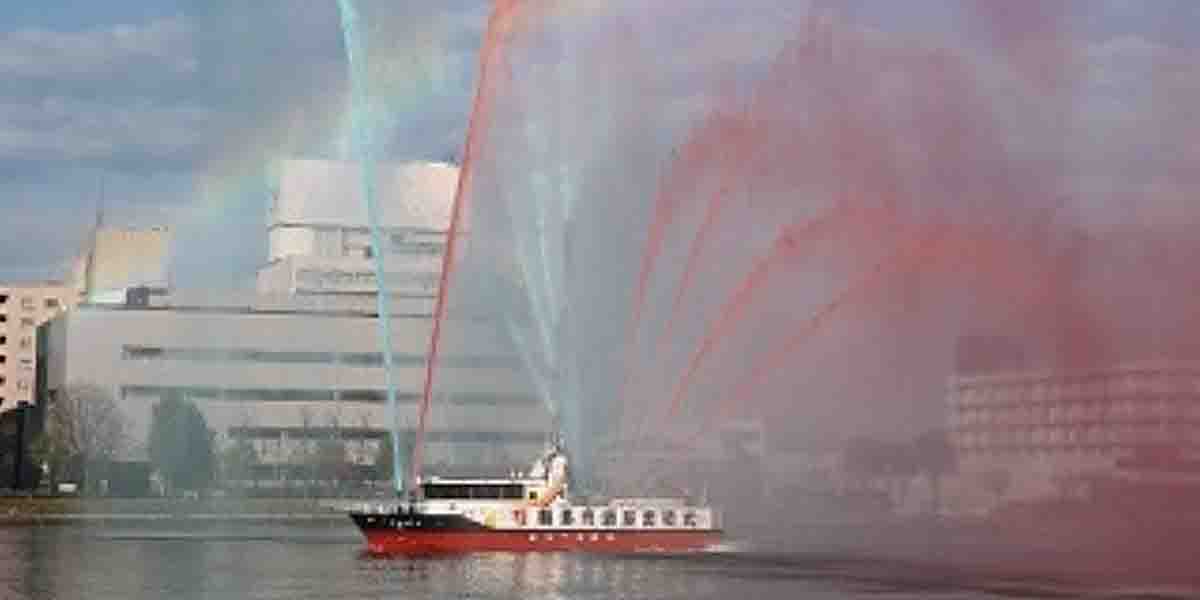 一斉放水は、萬代橋下流で10時30分から実施される。防車や消防艇が、信濃川両岸から一斉に放水を行う。