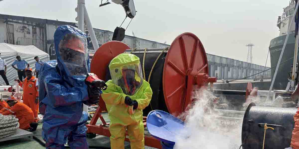 訓練には、海上保安庁の機動防除隊(NST)とインド沿岸警備隊の職員が参加し、危険・有害物質(HNS)対応を主題とした実践的な訓練が行われた。ケミカルタンカーからのアンモニア漏洩を想定したシナリオのもと、両機関の職員は漏洩箇所の特定、漏洩防止措置の実施などの対応活動を通じて、HNS事故への対応に必要な知識と技能の共有を図った。