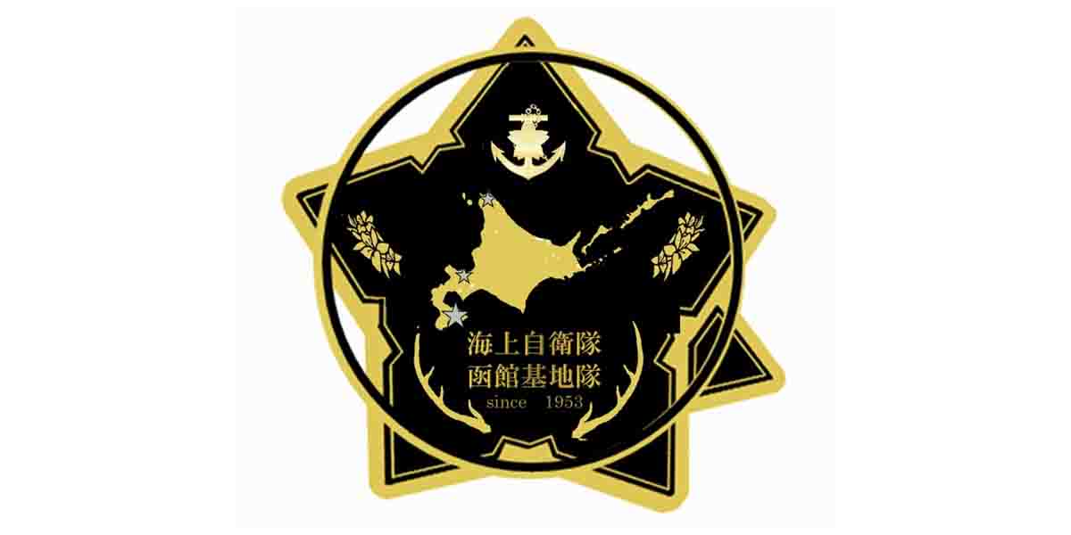 選出されたロゴマークは、函館を代表するランドマークである「五稜郭」を背景に北海道の地図を入れ、函館基地隊隷下部隊所在地に銀の星を配置、エゾシカの角、函館市のシンボルの花「つつじ」がデザインされている。