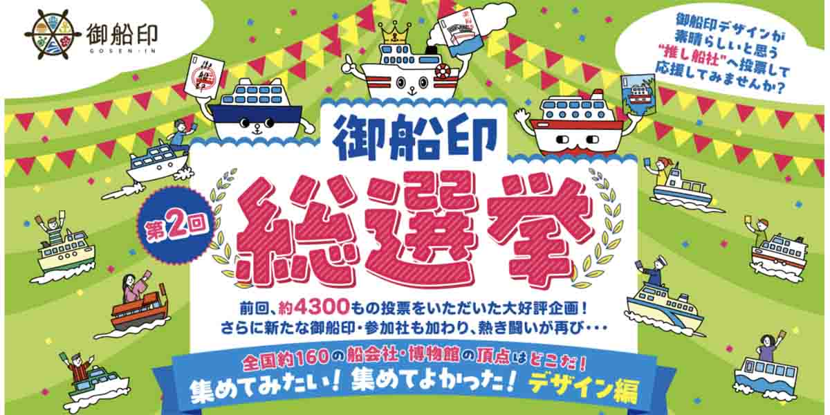 この総選挙は、御船印を発行する全国約160の船会社や博物館の中から、利用者がデザインが素晴らしいと思う”推し船社”投票する企画。前回は約4,300票が集まり、今回も新たな御船印や参加社の追加により、再び投票による選抜が行われる。