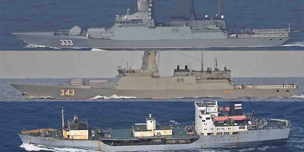 今回、確認されたのは、ロシア海軍のステレグシチー級フリゲート「ソヴエルシェンヌイ(Совершенный:333)」、「レーズキィ(Резкий:343)」とみられる鑑定と、ドゥブナ級補給艦の計3隻。
