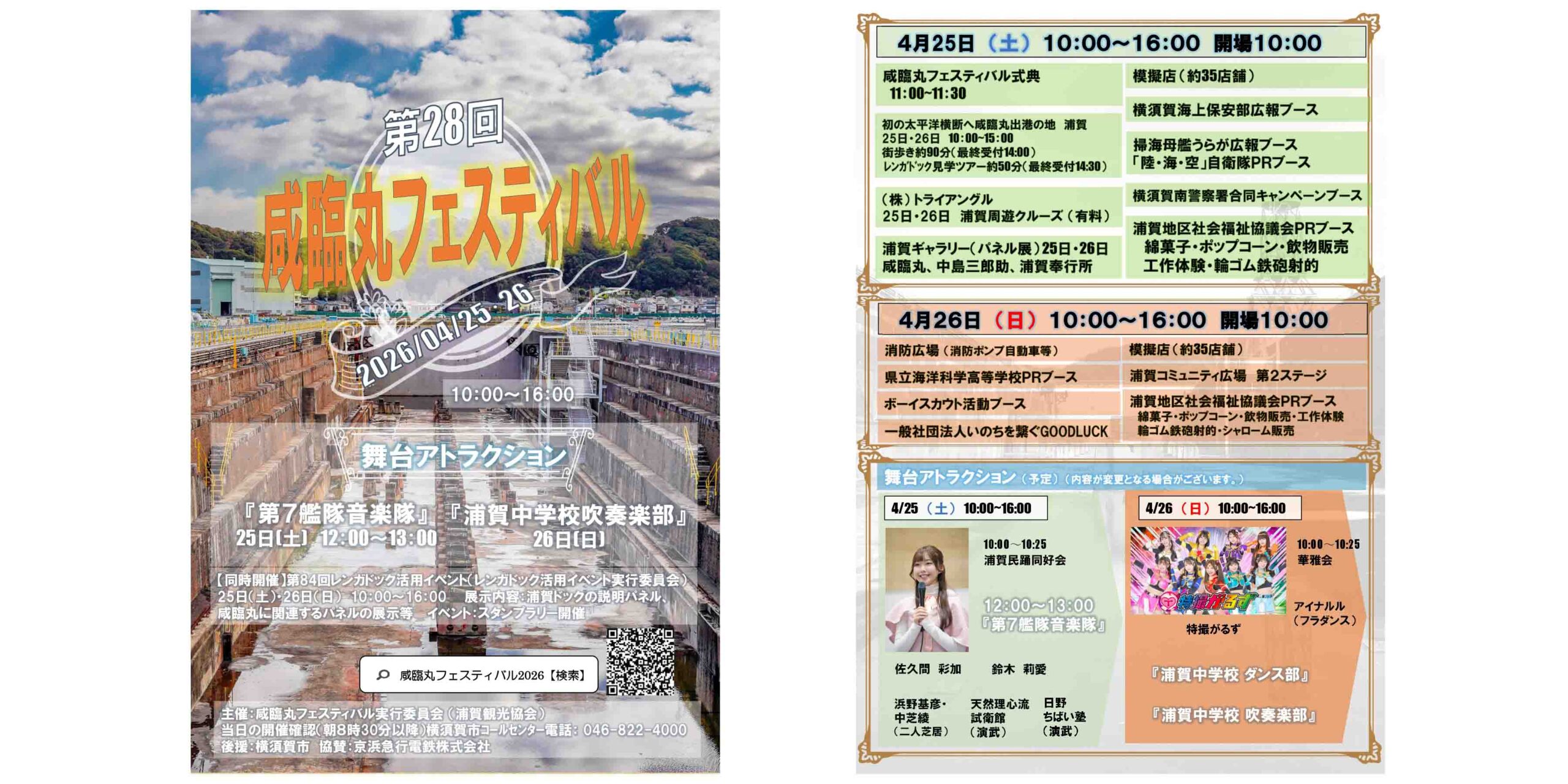 咸臨丸フェスティバル実行委員会は、2026年4月25日(土)と4月26日(日)の2日間、横須賀市浦賀の「浦賀レンガドック」周辺で「第28回咸臨丸フェスティバル」を開催する。