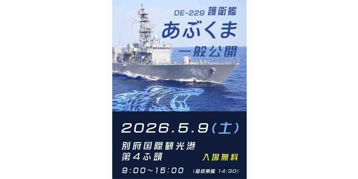 自衛隊大分地方協力本部と海上自衛隊は、2026年5月9日(土)、別府港において、護衛艦「あぶくま(DE-229)」の一般公開を実施する。
