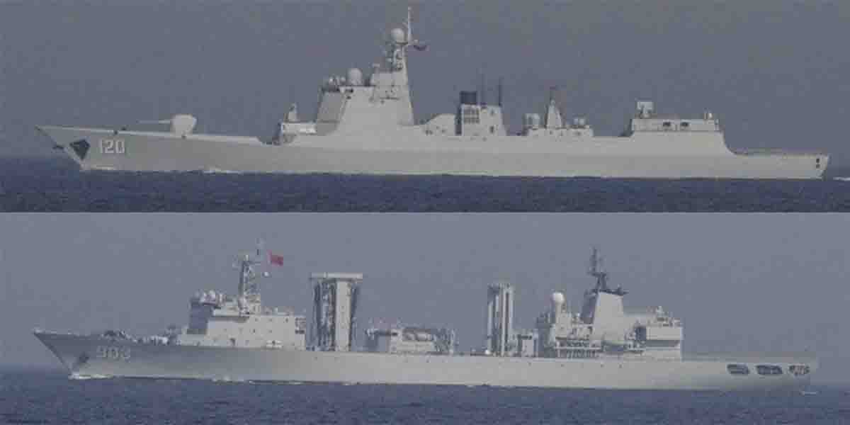 確認されたのは、旅洋III(ルーヤンIII)級ミサイル駆逐艦「成都(120)」とフチ級補給艦「可可西里湖(903)」とみられる艦艇の2隻。2隻はまず、4月27日(月)7時頃に対馬の北東約80kmの海域を南西進する様子が確認され、その後、対馬海峡を南西進し、東シナ海へ向けて航行したことが確認された。なお、これらの艦艇は3月30日(月)から31日(火)にかけて対馬海峡を北東進するところも確認されている。